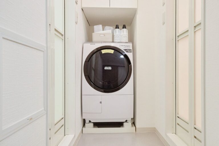 乾燥機付きのドラム式洗濯機にフルキッチン。まるで自宅で暮らすように快適に過ごすためのものをすべて揃えています。